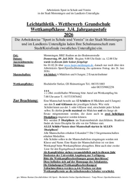 Arbeitskreis Sport in Schule und Verein in der Stadt Memmingen und im Landkreis Unterallgäu Leichtathletik - Wettbewerb Grundschule Wettkampfklasse 3./4. Jahrgangsstufe 2026 Die Arbeitskreise "Sport…