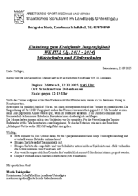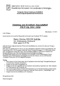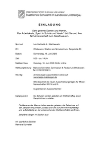 EINLADUNG Sehr geehrte Damen und Herren, Der Arbeitskreis „Sport in Schule und Verein“ lädt Sie und Ihre Schulmannschaft zum Kreis nale ein. Sportart: Leichtathletik A - Wettbewerb Ort: …