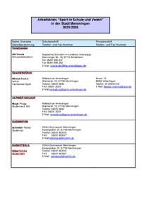 Arbeitskreis “Sport in Schule und Verein” in der Stadt Memmingen 2025/2026 Name, Vorname Dienstbezeichnung. Vorsitzender Schulanschrift Telefon- und Fax-Nummer Abt Ursula Schulamtsdirektorin …