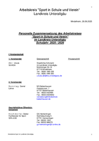 1 Arbeitskreis "Sport in Schule und Verein“ Landkreis Unterallgäu Mindelheim, 28.09.2025 Personelle Zusammensetzung des Arbeitskreises "Sport in Schule und Verein" im Landkreis Unterallgäu…